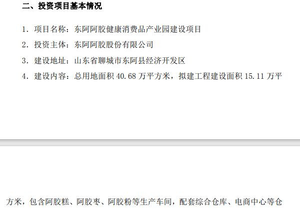 《每日经济新闻》记者注意到,这座新产业园的定位并非为了扩大传统阿胶块的产能,而是瞄准了“健康消费品”。园区将主要用于药食同源食品、保健品、功能性食品等健康消费品的生产,包含阿胶糕、阿胶枣、阿胶粉等生产车间,配套综合仓库、电商中心等仓储设施,设有质检孵化中心满足检验与产品上新需求。